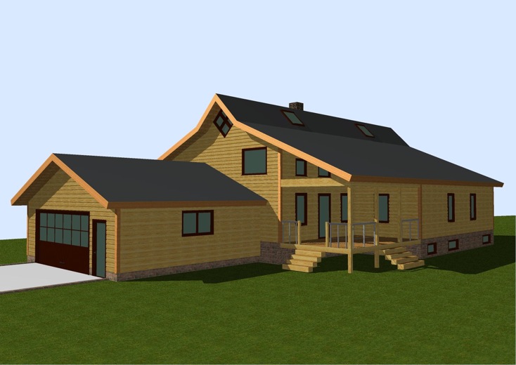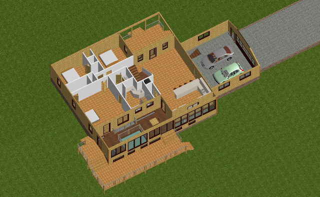 Click to Enlarge The TERRA was original designed for the Hill Country of Texas and would be considered a "ranch" style home, with the popular Great Room/Kitchen arrangement. The optional garage shown here intersects the main and basement levels halfway.